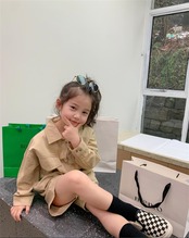 120 着丈:約44.5cm 袖丈:約34.5cm 肩幅:約40cm バスト:約43cm
