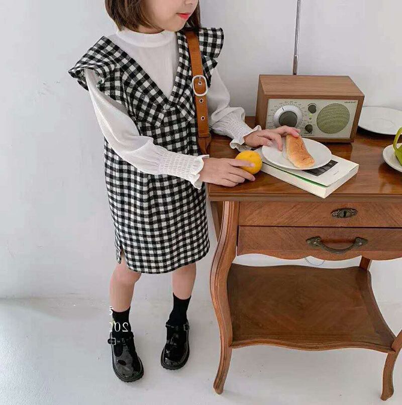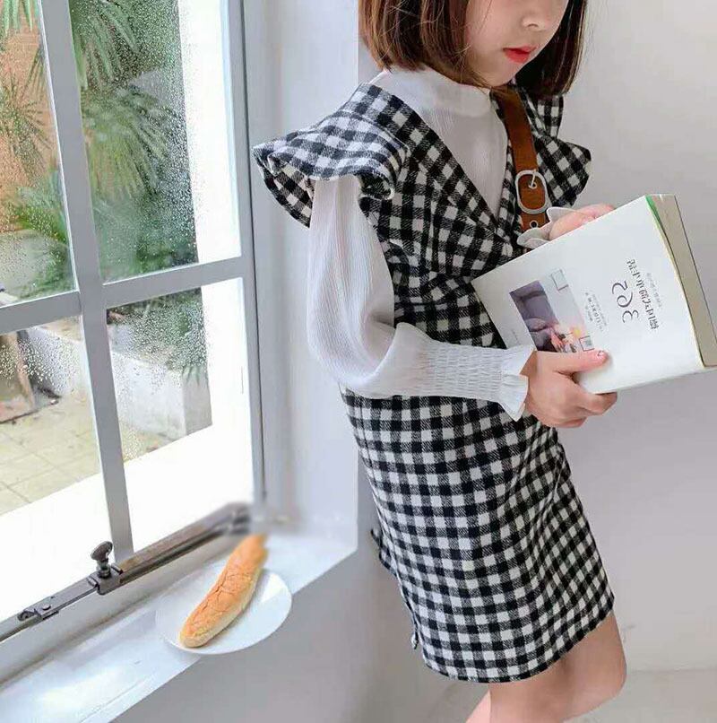 kids ブラウスパフ スリーブ チェック柄 シャツ+スカート