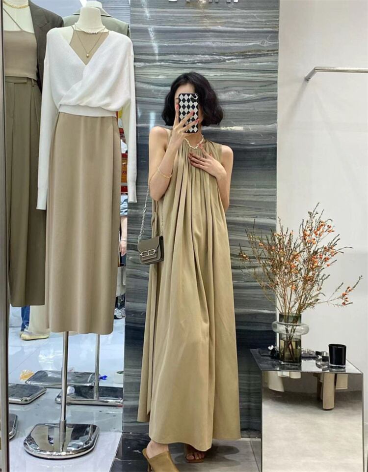 袖なしロングスカートは、夏のおしゃれにピッタリなアイテムです。涼しげな素材とシンプルなデザインが特徴で、カジュアルなコーディネートからきれいめなスタイリングまで幅広く活用できます。レディースコーディネートに欠かせない一着として、ぜひご検討ください。
