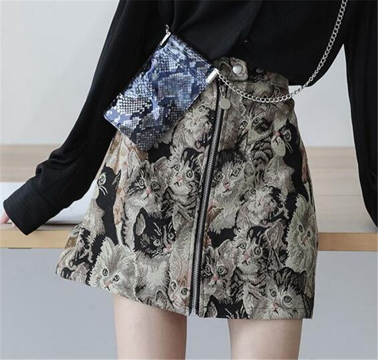 レトロな雰囲気が漂う、可愛らしい猫の刺繍スカートが新登場!緻密に刺繍された猫のモチーフが、一枚で存在感のあるコーディネートを演出してくれます。
