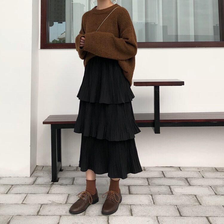 カジュアルすぎずこなれて見える ケーキスカート プリーツスカート