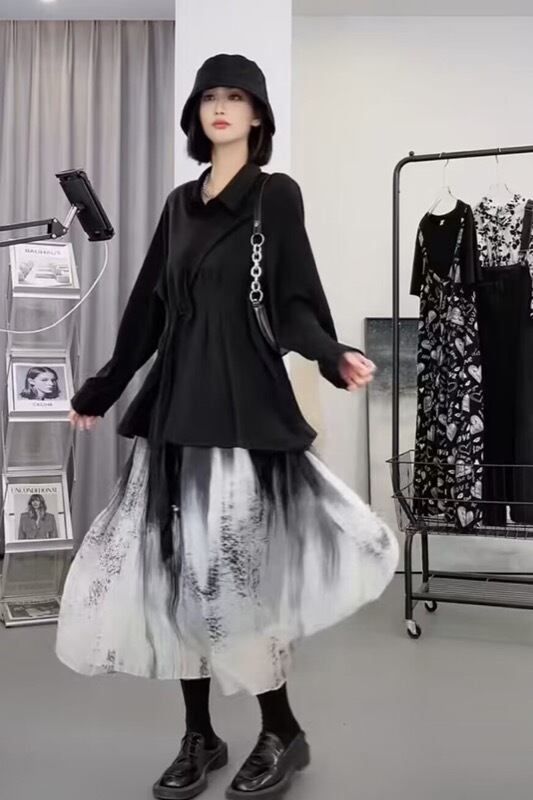 脚長効果抜群のハイウエストロングスカート。ウエストを高く見せることで、足もとがスッキリと長く見え、スタイルアップが叶います。軽やかな素材感で、歩くたびに揺れるスカートは女性らしさを引き立てます。