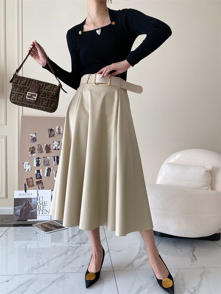 このハイウエストAラインレザースカートは、その洗練されたデザインで幅広いシーンに対応可能です。オフィスやパーティー、デートなど様々な場面で活躍してくれること間違いなし。是非、ご自身のコーディネートに取り入れてみてください。 このスカートがあなたにもたらすワクワク感と自信を存分に味わってください。