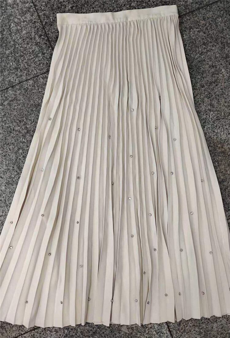 上品なデザインで、どんなトップスとも相性抜群です。ウエストゴム仕様で、着心地も抜群に快適。細かなプリーツが動くたびに、華やかな表情を見せる一枚です。