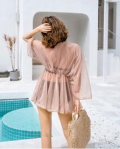 セパレート型水着の3点セット。シンプルな無地デザインにパット付きで、バストアップ効果も抜群です。ビーチやプールサイドで目を引く存在になること間違いなし。