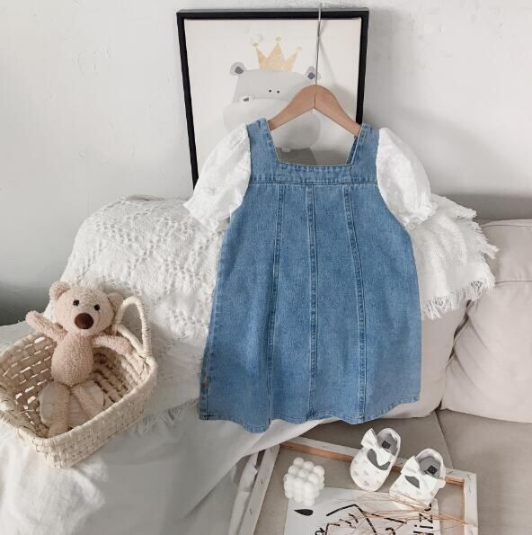 子供たちにも大人気の韓国風デニムワンピースが登場しました。キュートなフリル袖がアクセントになり、可愛らしい印象を与えます。