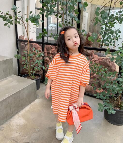 子どもたちに大人気の韓国風なボーダーTシャツのワンピースが登場!カジュアルながらもおしゃれなデザインで、どんな季節にも着回しやすい一枚です。柔らかい生地で気持ちよく着られるので、快適さも抜群です。