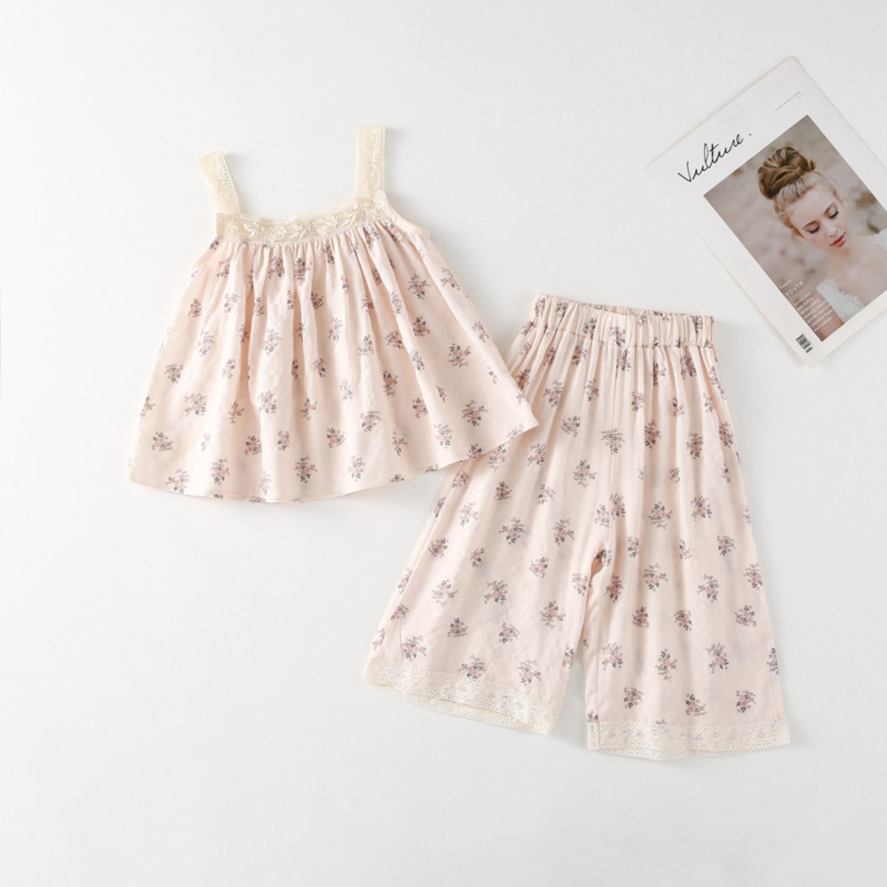 kids 部屋着にぴったり!花柄キャミソールとズボンのセットアップ