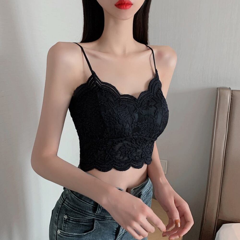 上品な花柄刺しゅうデザインのショート丈キャミソール!カップ付きでこれ1枚でもインナーとしても使える1着!